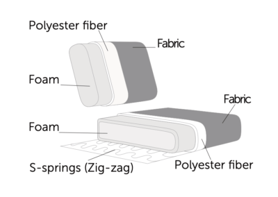 Diivani istumispadja alust pehmendab laialt levinud ja kvaliteetne Zig-zag vedrustus. Istumispadja sisemuseks on 145 mm paks kontuuritud polüuretaanvaht (30 kg/m3), mis on kaetud vatiiniga (300 g/m2). Kõige pealmine kiht on polsterdatud mööblikangaga. Selline kooslus on võrdlemisi pehme, aga sealjuures väga vastupidav variant.